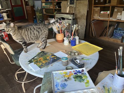 I painted later than usual one evening, and Jackson decided it was time for dinner. He would not be ignored. At least he didn’t bite me on my donkey. He has done that many times, the little big brat.