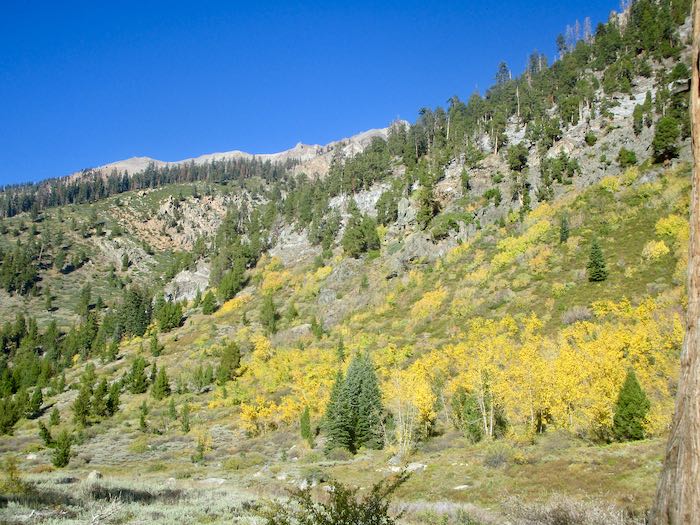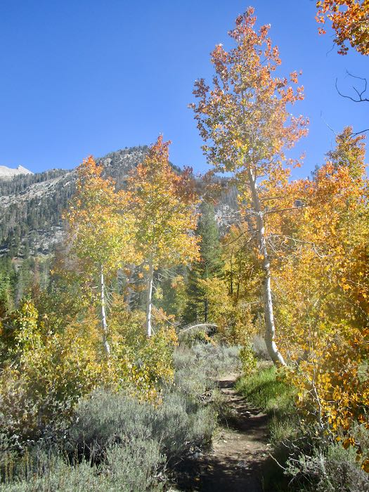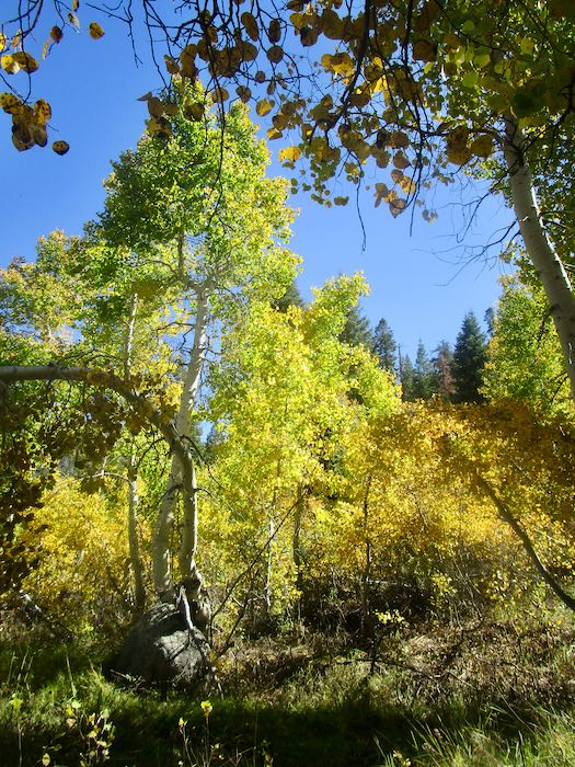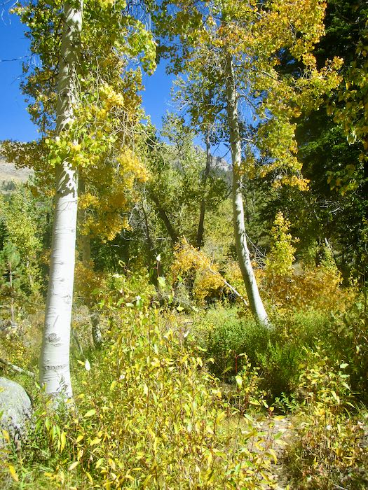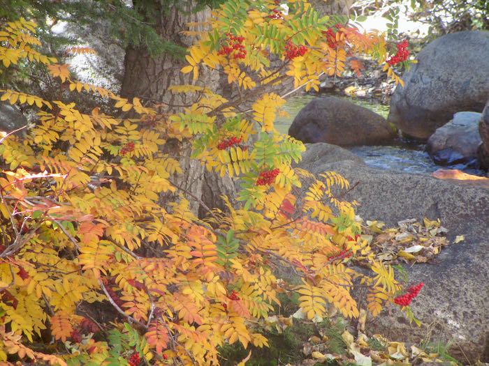 We went walking up the Mineral King valley in search of brilliant fall color. This was easy to find, so many yellows, but of course we wanted oranges and reds too.