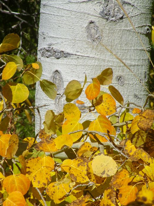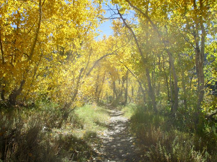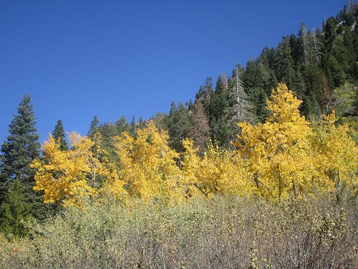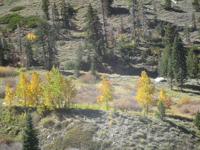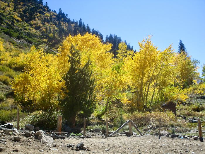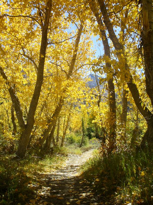 The cottonwoods are yellow; it is the aspen which turn orange and red, so for stronger colors one must walk farther up the trail than rather just hanging out near the pack station.