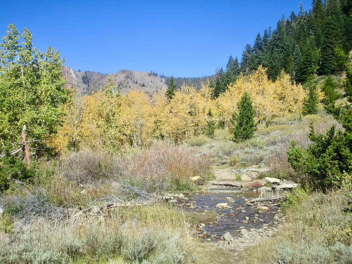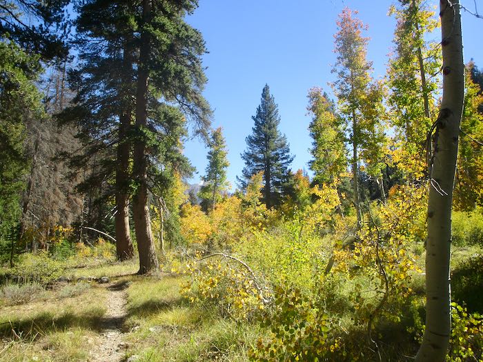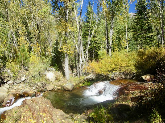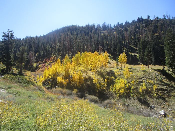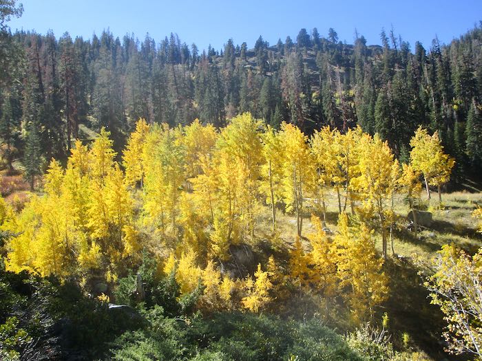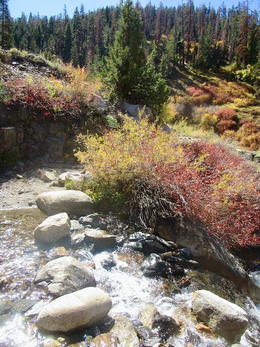 If you read my posts last week, you saw the variety of fall color in Mineral King from year to year. This week I will show you all 2025, mid-October. Not much chit-chat, just some photos. Today is a walk up the Nature Trail, which originates at the upper end of Cold Springs campground.