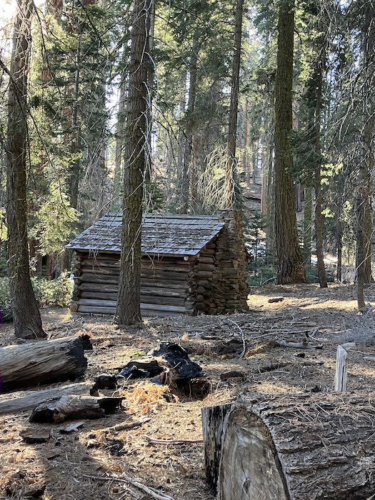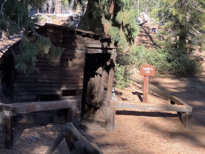 Sharon, Squatter’s Cabin might be about 3/4 mile from Tharp’s Log. It is on the northern edge of Crescent Meadow. I didn’t notice Tharp’s hinges but will embiggen my photos to see if they are identifiable.