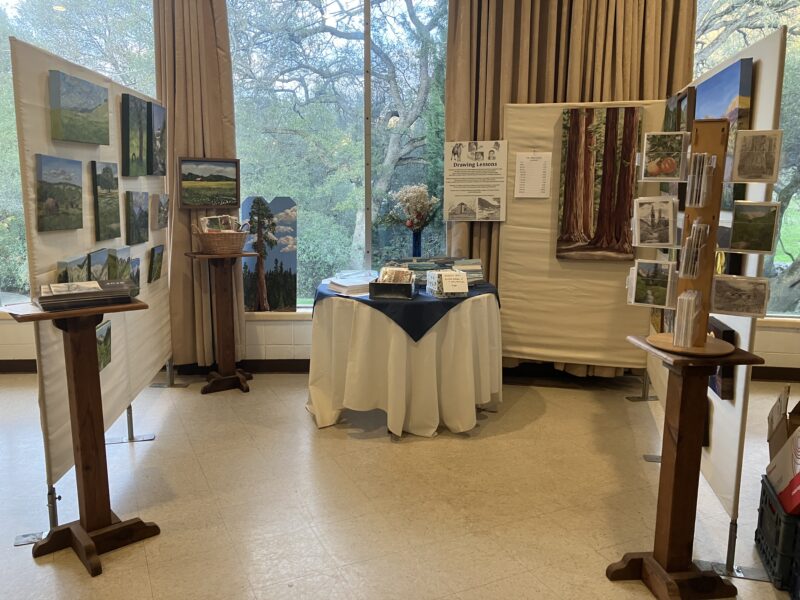 Marjie, were you there?? Because you described it exactly as it was! Yes, I was the only one with “fine art” as opposed to crafts (and I was wearing a pair of earrings made by my booth neighbor.) I have wondered for years if expanding my subject matter makes sense and always concluded that I want to stay local. Poorly attended shows, low sales, market saturation, lack of galleries—these are all consequences of choosing to stay local. Rather than expanding my subject matter, I expanded my skills from just drawing local landmarks in pencil, to accepting commissions, making reproductions and cards, teaching drawing lessons, making presentations when the opportunity arrives, publishing books, designing coloring books, learning to oil paint, and learning to paint murals. It is just that when a show is slow that I begin to question if I should bother with them any more. Then I wonder if “everyone” will forget about my work if I’m not in the public eye. Around and around and around. . .