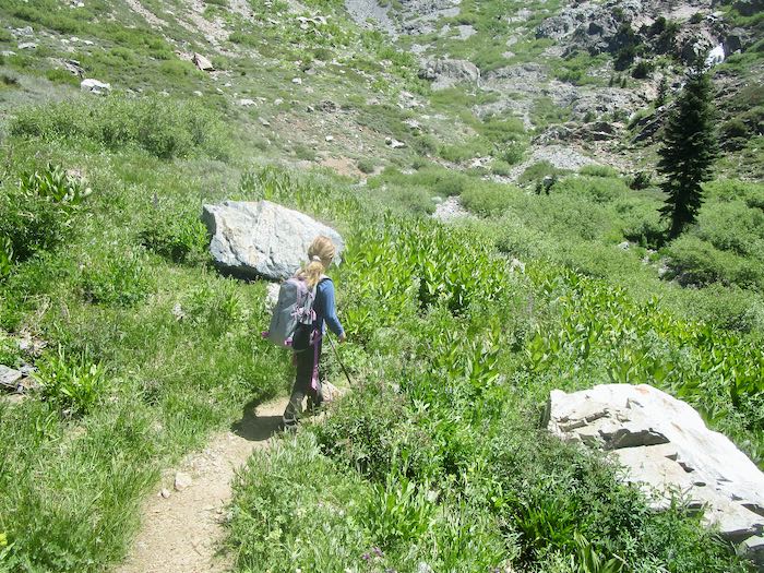 Feeling hopeful, but cautious, we cut our break short and headed back down the trail. Two men had just passed us on their way down from Forrester Lake, cutting their backpack trip short by a day because the weather was a bit much.