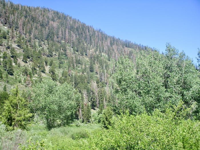 That’s Case Mountain over there. It is very green, and there are new roads carved in because of the wildfire last fall.