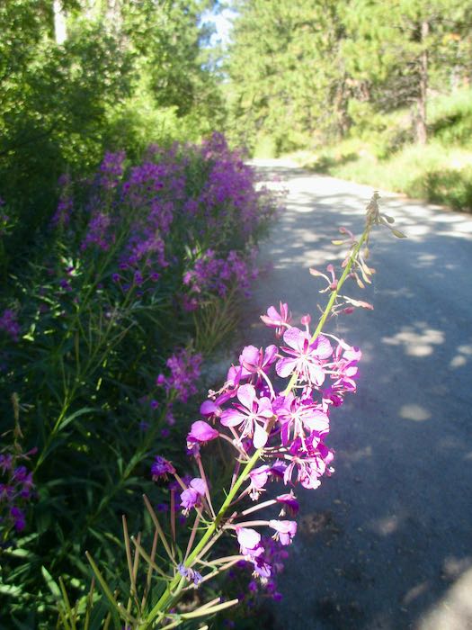I was happy to see all the green and the wildflowers, along with the reassurance that the temporary bridge made it through the winter. (I’m always relieved to see the sign on the way back home too, because if it is temporary, maybe it will vanish while we are up the hill.)