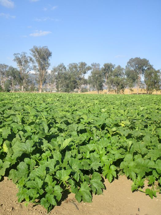 Mrs. Texas is at the edge of a pumpkin patch, a big “patch”. Okay, a pumpkin field. We mistakenly thought it was summer squash, that yellow crookneck stuff that prompted a friend of mine to say, “‘Squash’ is the past tense of ‘squish’, and ‘squish’ is not a food.” (Right on, Ben!) But pumpkins? Yes!