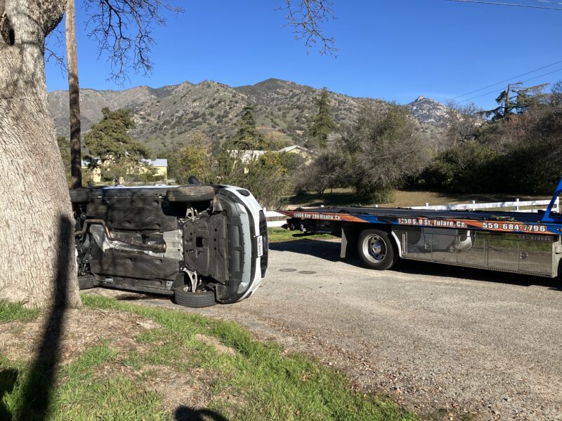 The driver doesn’t know what happened—just driving, then sideways. The windshield was completely smashed on the driver’s side, because that is the way the driver was extracted. The driver wasn’t hurt, just puzzled and embarrassed and dismayed and every other emotion when your life is suddenly disrupted to this degree with multiple uniforms surrounding you. (Yes, keeping things anonymous here.)