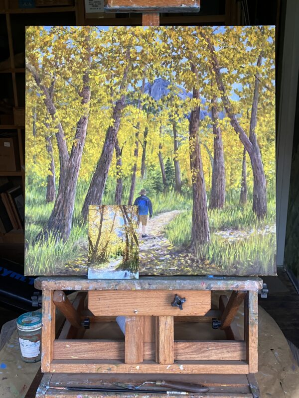 He mentioned an interest in another painting to go with this one (which is to go with another one he owns), so I mentioned these two, which are still available. Pushy artist, eh? Nope, helpful. I hope. (The colors are SO MUCH BETTER IN PERSON.)