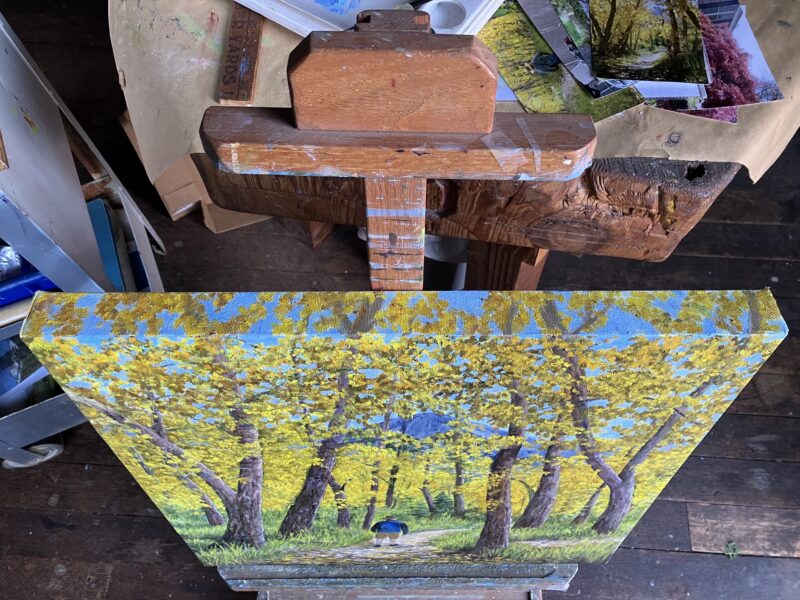 After puttering around with mural paints in preparation for the next painting day, which was an excuse to be outside in the sunshine, I finally moved into the painting workshop to see if I could progress on the Yellow Tunnel.