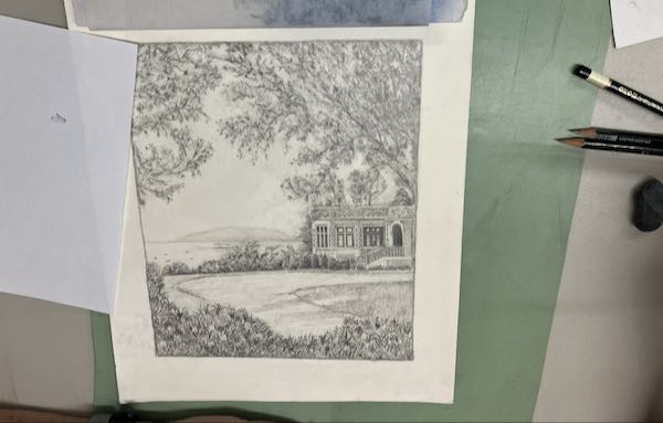A week or two ago I had the privilege of teaching a two hour beginning drawing workshop for 9 people from Exeter’s continuation high school. All of the participants were there by choice, not because it was an “easy” class. Two hours was nowhere near enough time, and I do not understand how a school teacher can manage when each one in the same group progresses at a different pace. We had a good time, and it was very intense compared to regular drawing lessons where I work with about 4 people at a time for an hour, each working on his own piece at his own pace.
