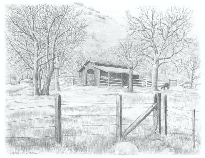 I drew this in pencil (duh) from several photos taken a short distance up North Fork Drive in Three Rivers. The original is on a piece of 11×14” archival paper. It is for sale. $375 (plus tax if you live in California) or make me an offer.