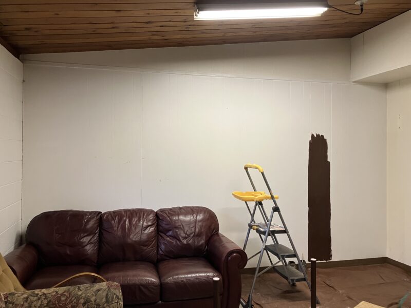 Someone brought in comfy furniture for one end, and then I was allowed to go at it with paint.