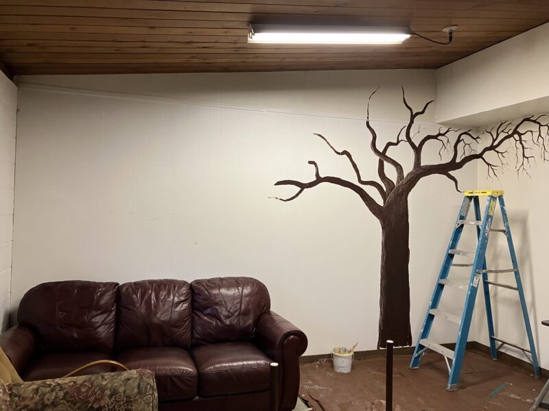 Multi-purposes: Bible study, council meetings, job interviews, men’s group, a place to hang out with coffee before church, a place to paint murals!