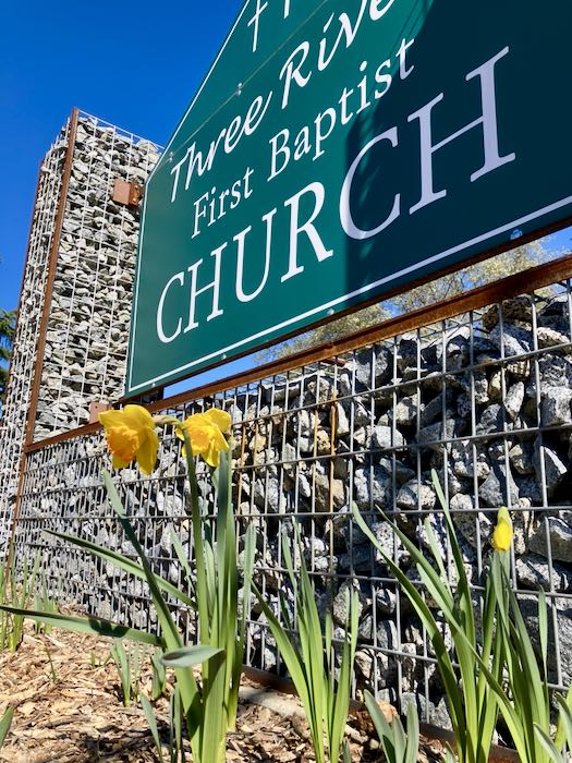 It rained and hailed rather ferociously while I was painting that indoor oak tree at my church; two days later I took this photo. Check out the first daffodils in bloom, in spite of the recent heavy cold storm.