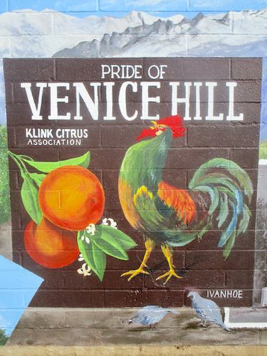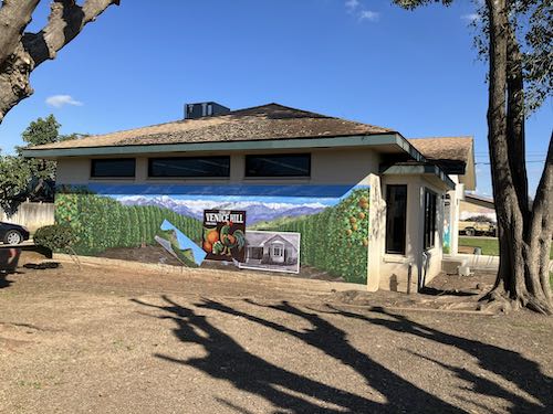 Some more staring and thinking brought me to the conclusion that despite simplifying the packing label, I needed to not abbreviate Klink to Klink Citrus; the name was Klink Citrus Association. And since I couldn’t figure out how to legibly paint “Tulare County, California” on the wall’s rough surface, I simply added “Ivanhoe.”