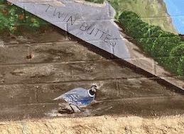 I stood back, studied the mural while visiting with my cousin on the phone, and decided that the blue sky in the Twin Buttes inset was too blue, too flat, too perfect.