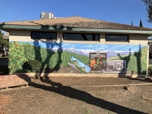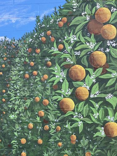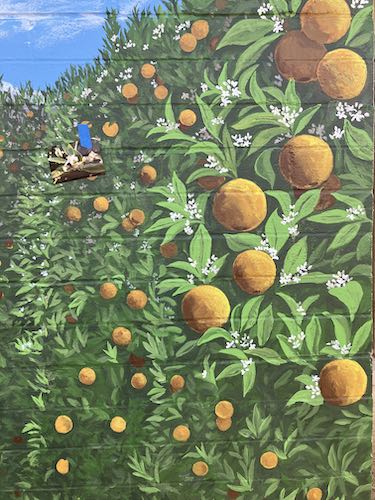 Congratulations, Jana! You finished it!!! It looks SO good! It looks like there’s an orange orchard right there in town, and the ground looks like it just continues from the real earth right into the painting. I think it’s a wonderful attraction for the town and library, and I’m certain that it’ll draw people in. I can imagine people standing in front of it for pictures – I know I would!