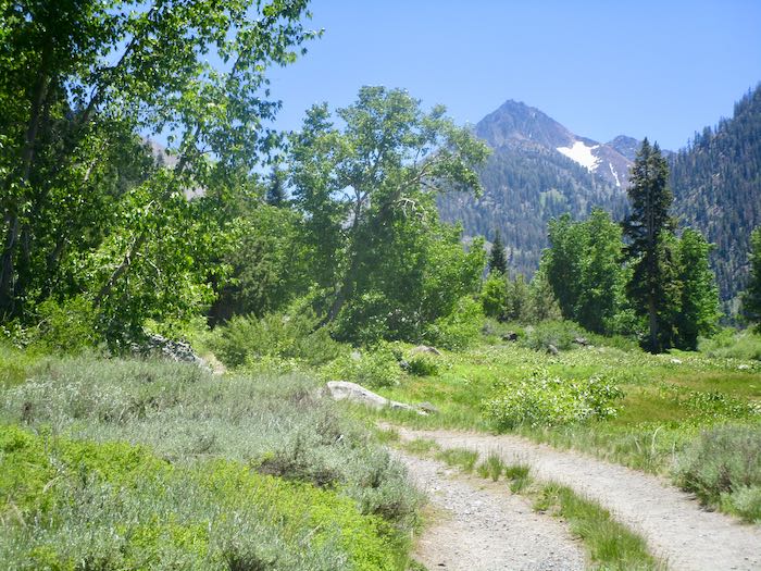 This road leads to the pack station, then becomes a trail. In the olden trails (when Trail Guy was just a boy), people could drive past the pack station and even go up to Crystal Creek and cross it! In their cars!
