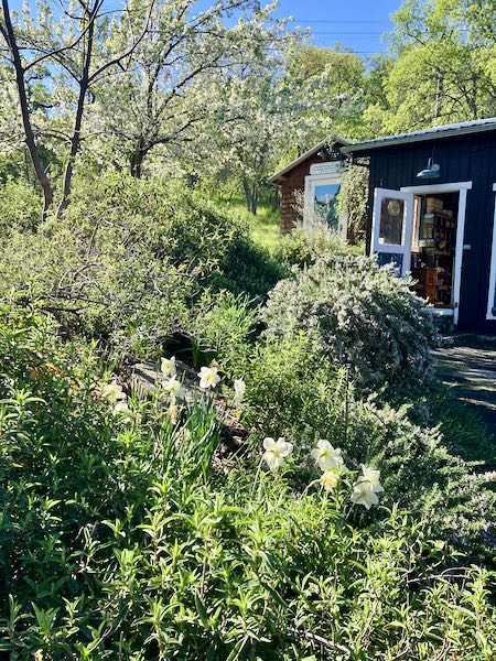 Then I pulled weeds. No photos. But you can look at my studio through the flowers.