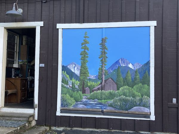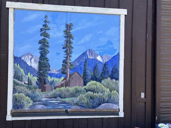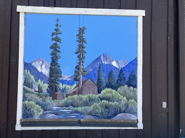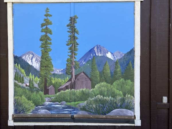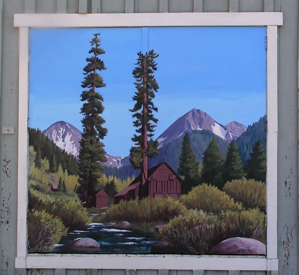 The colors are truer now. But the sky probably could use a few clouds, those wispy types that were in the mural earlier. Some other time. . . Instead, I repainted the white border, and then the walk-in door frame, and then the windows of the studio. Way leads on to way. . .