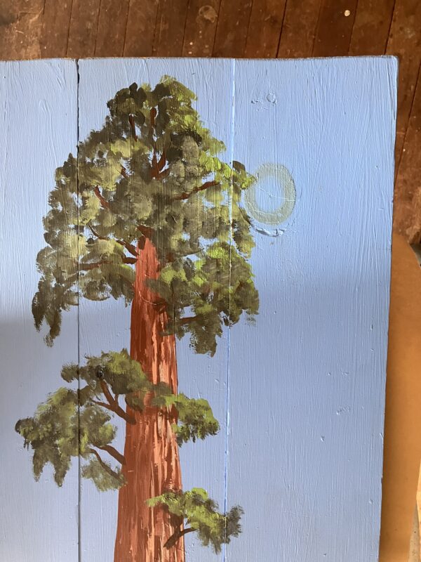 8. This large-ish wooden panel of a redwood tree was displayed at Stem & Stone. I stopped by to deliver more notecards and saw that it had developed a problem. Turns out that knotholes in wood contain substance that soaks through paint.