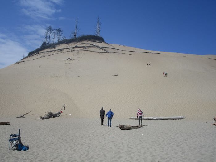 This beach is known for a giant sand dune. I climbed it two other times and wanted to test myself, SIXTEEN YEARS LATER. (I’ve never been this old before.) It’s the mostly bare one with a little group of trees on the top left.
