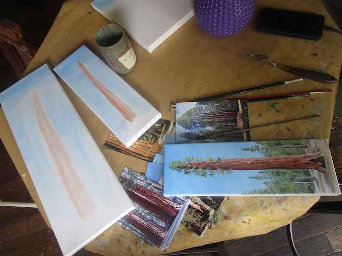 With the upcoming show (opening August 7), with many days and nights away from home, with a little stretch of mild summer weather, I have shifted into overdrive when it comes to cranking out paintings. I am focused on getting some inventory ahead for the local shops that sell for me, along with finishing things that previously didn’t feel very important.
