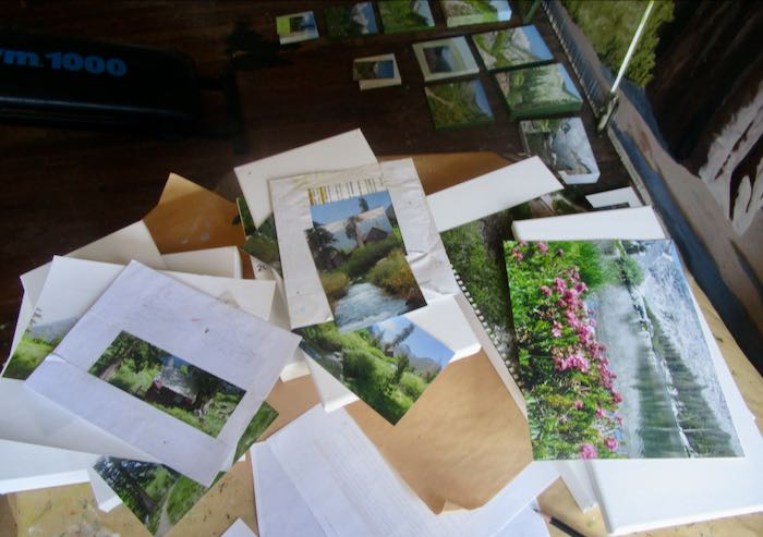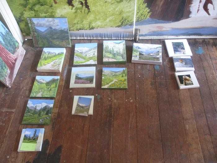 The first step in planning is to look at the available Mineral King paintings. (For my out-of-the-area readers, Mineral King is a beautiful alpine valley in Sequoia National Park; each summer I sell art 4 miles below the valley at a resort in a little cabin community called “Silver City”.)