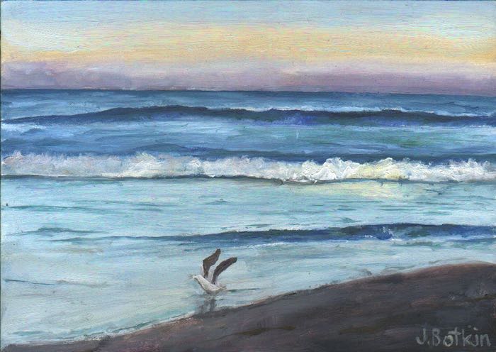 Pacific Ocean III, 5×7″ oil painting on board, ready for framing or for hanging as is or sitting on an easel (included upon request)