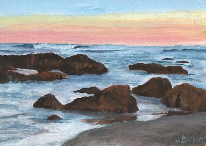 Pacific Ocean IX, 5×7″ oil painting on board, ready for framing or for hanging as is or sitting on an easel (included upon request)