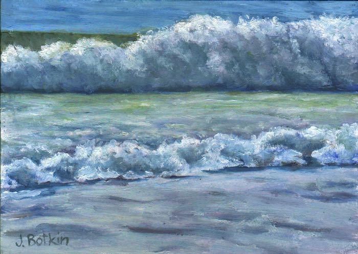 Pacific Ocean VI, 5×7″ oil painting on board, ready for framing or for hanging as is or sitting on an easel (included upon request)