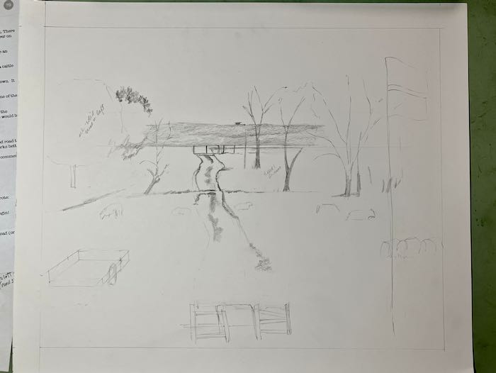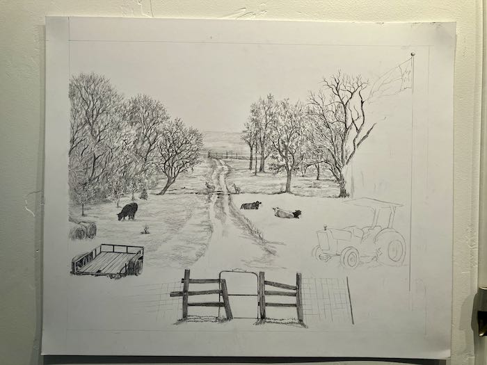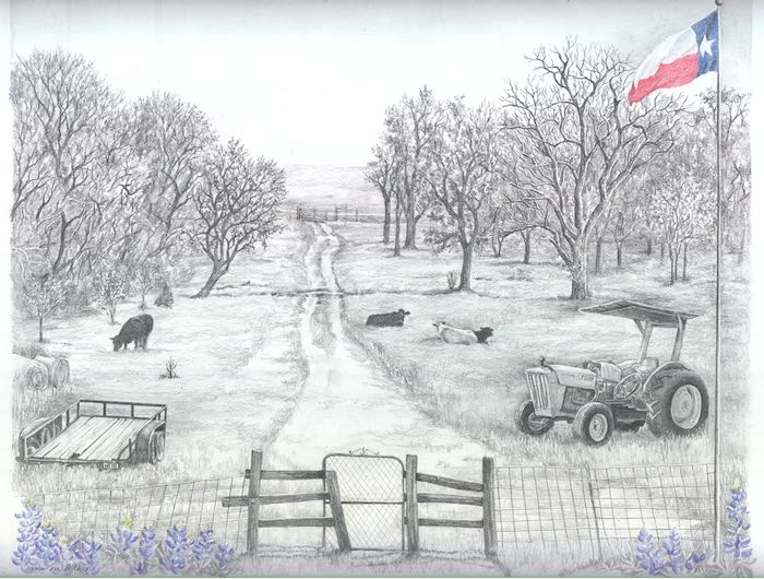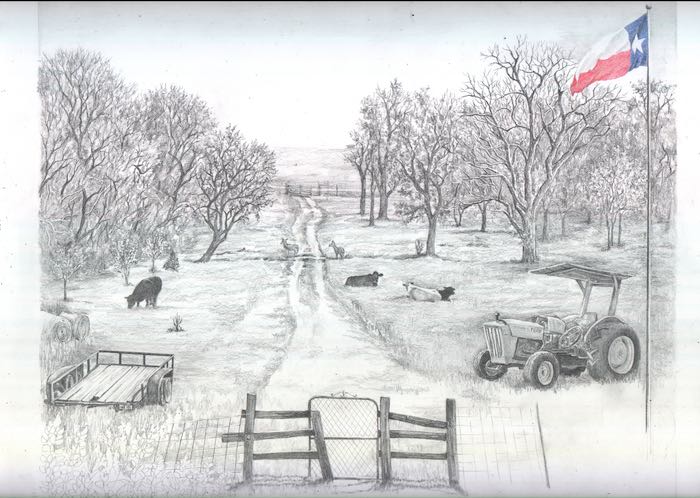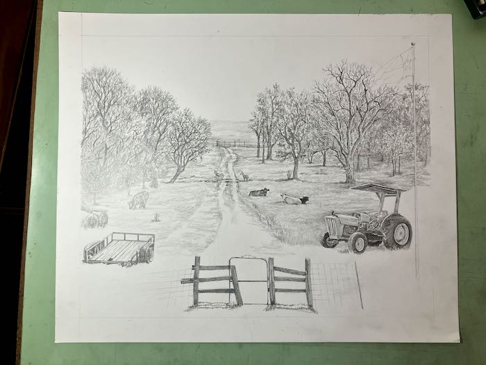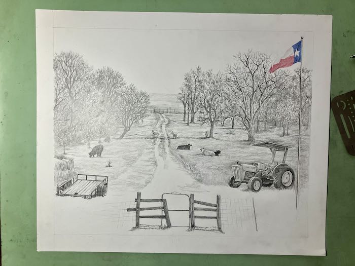 When we last looked at this challenging pencil commission of a Texas scene, it looked like this.