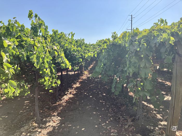 The customers provided current photos of the view, but now the vineyard is gone and almond (or peach? plum? nectarine?) trees are in their place.