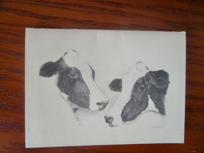 An old friend sent me this card, which I wrote to her and her husband in 2001 (along with a sweet note because that is just how she is). When I flipped the card over, I saw that I titled the drawing “Tulare Cownty” and included a completely unfamiliar phone number with a 703 area code.