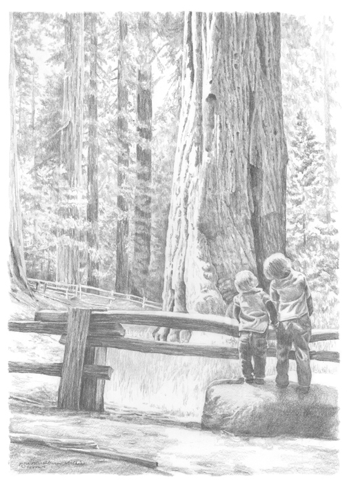 Because I hit a slow time (feast or famine in the art business), I asked her to send me a photograph so that I could draw it again. She complied, and I dove in immediately on a rainy day.