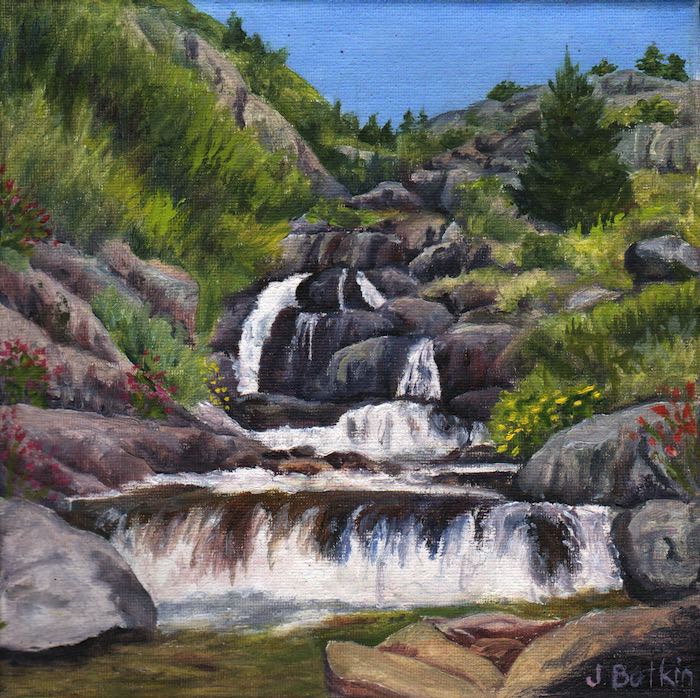 You can see that I veered off the photo; the ArtWorld would be proud of my non-dependence on photographs, but it was REALLY DIFFICULT. We often see deer in this area, so I decided that would spice up the painting.