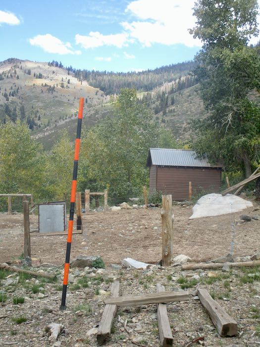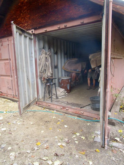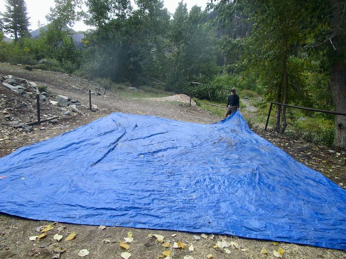 We walked to the pack station and found an enormous tarp all wadded up, and the stock was gone. Couldn’t just waste that tarp, because chances are we paid for it with our tax dollars. So we folded it up and then put it in the storage container.