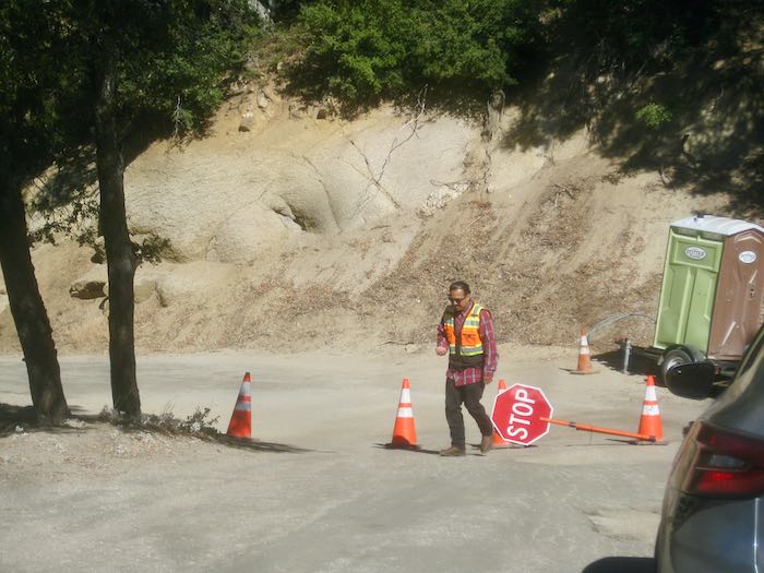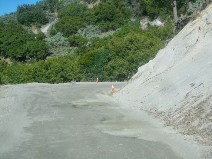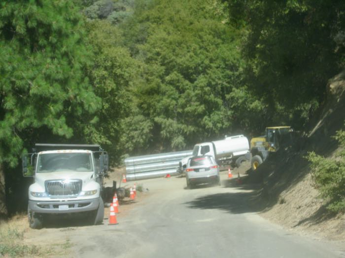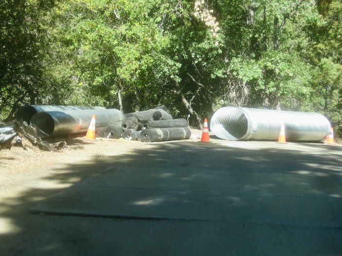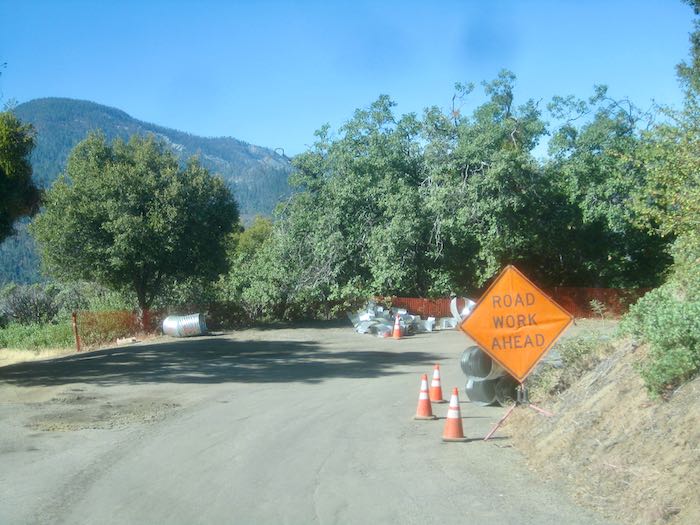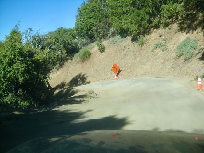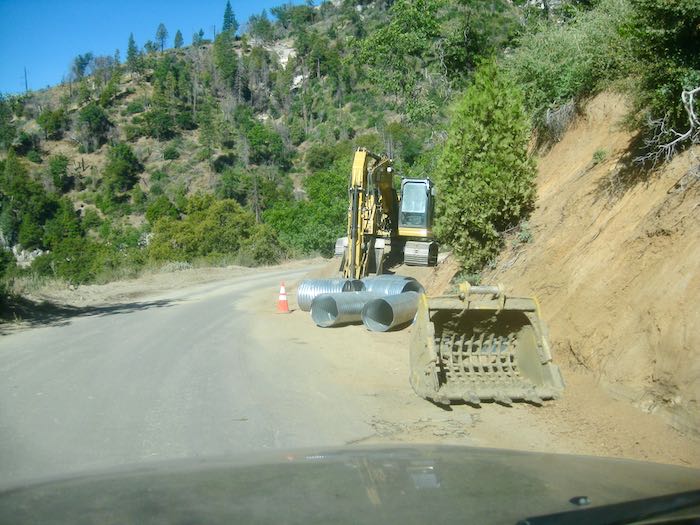 The road is much much worse now. Driving down the other morning, I took some photos in the construction zone. I didn’t take any photos in the unpaved upper areas because those sections require 2 hands on the wheel, 2 eyes on the road, and 2 halves of one’s brain fully engaged in crawling through the hogwallows, washboard, potholes, and deep ruts, some created by springs, some by run-off.