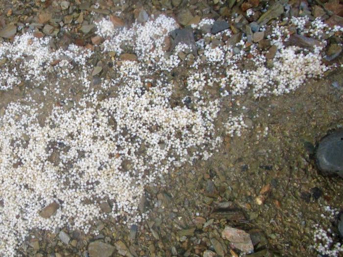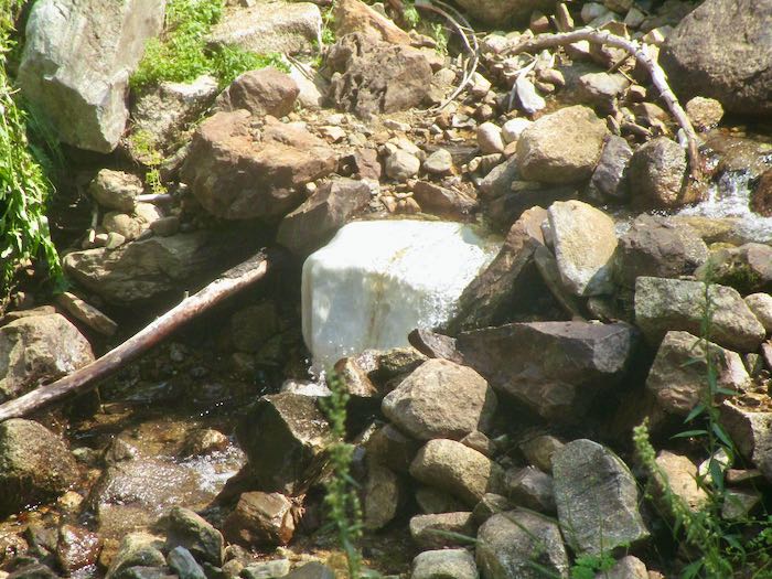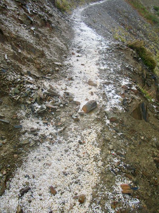 There was still some hail left the next morning, but the stream had subsided and was clear. (No water photos, so you’ll just have to believe me.)
