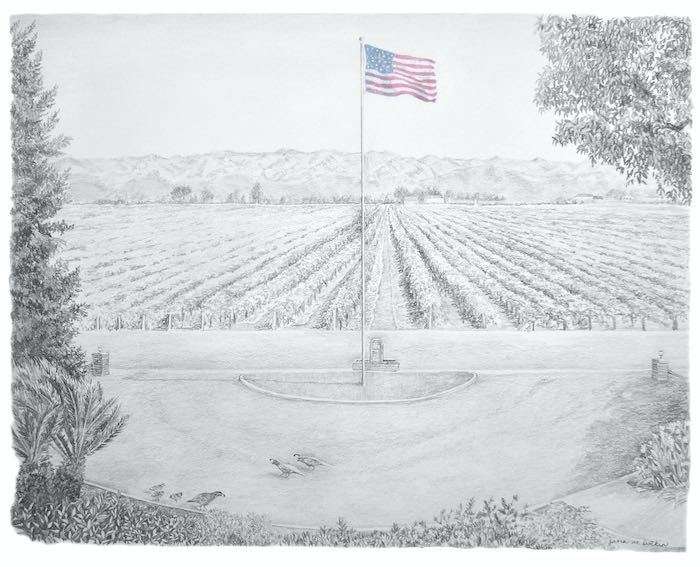 The gate in the foreground looked too small so I did the tissue thing, making it bigger, and then sending it to the customers for their approval. I also asked about the flags because they had asked for the American flag on top and the Texas flag below. While in Texas last year, I learned that Texas is the only state that flies its flag at the same height as the American flag because they used to be a sovereign nation. Texans are very proud of their state, and I posted about how that lone star appears in all sorts of unexpected places.