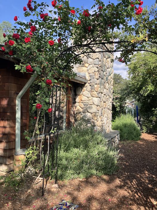 LOOK! The climbing roses are blooming, and they usually don’t appear until the end of April!