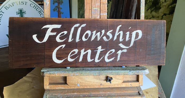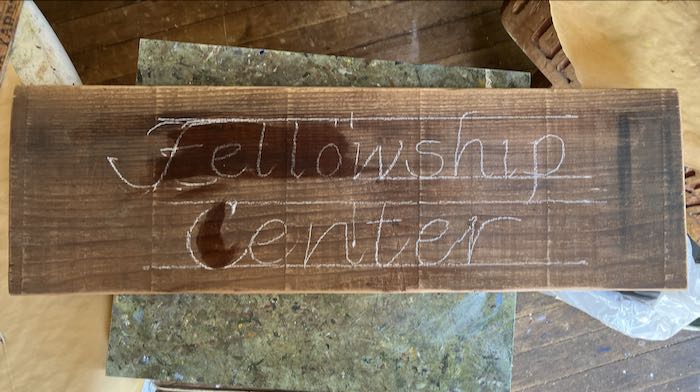 This sign will be repurposed, but first Trail Guy had to scrape off old lettering, and then I had to put forty-eleven coats of paint on it. Now we get to store it until the next volunteer does his part.