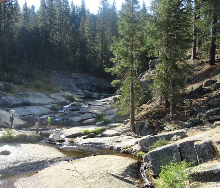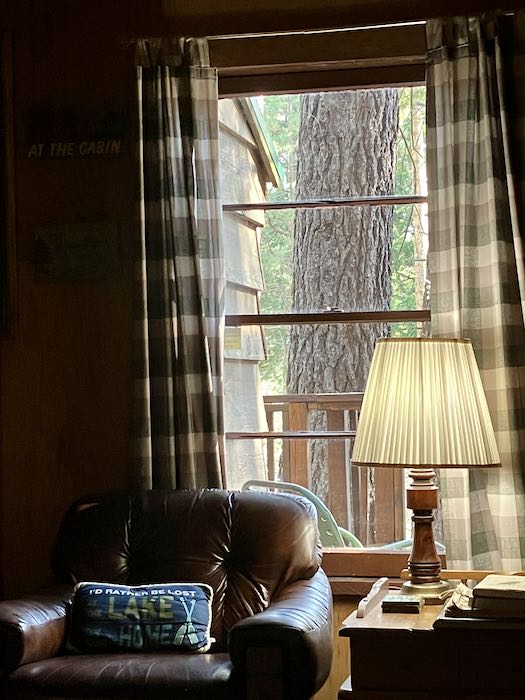 This is the eighth summer reunion with my childhood friend at her Hume Lake cabin. Hume Lake Christian Camp was established in 1946 on a lake in Sequoia National Forest which began as a timber pond. From there, logs were sent almost 60 miles downstream (to Sanger) on a wooden flume to be turned into lumber. Maybe it was called a “lumber pond”. . . I wasn’t born yet. The camp is a very active place, with over 300 private cabins on leased land above the conference grounds. The lake fronts the Christian camp with a 3 mile trail around it, a dam on the east end (weird to me that a lake drains east, but it goes into Kings Canyon instead of the Pacific Ocean), with a Forest Service campground, fishing, and two ways in and out of the area.